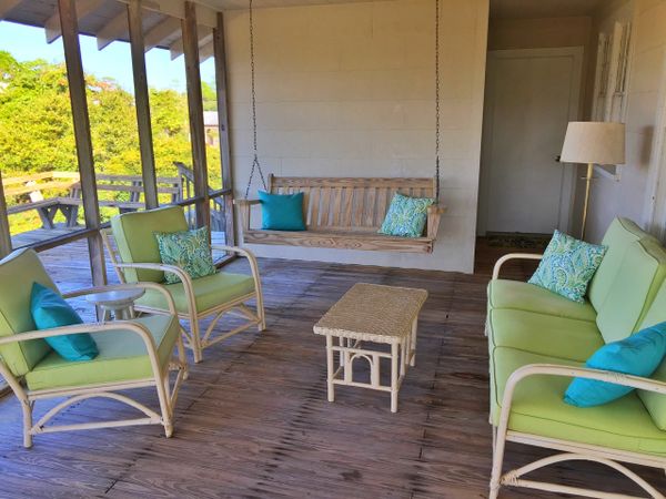 This roomy, four-bedroom home offers the best of both worlds - the beach across the street and beautiful views of Cotton Bayou from the porch and deck. Kick back and relax in this classic beach retreat, and enjoy access to a shared pier within a short stroll. This home also features a large kitchen equipped with every utensil you need to whip up a delicious meal, a dog-friendly living space, and a screened-in porch where you can unwind in the balmy breeze.