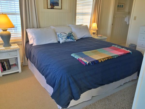 This original beach cottage is located across the street from the Gulf beach with beautiful, direct views of Cotton Bayou! This dog-friendly home sits directly on Cotton Bayou with access to a shared pier, so make sure to bring your fishing pole. The sandy water's edge makes a great place to entertain small children, while older ones can enjoy jumping off of the dock and splashing around the swimming area. Gather with your group in the inviting living room area and enjoy a fun-filled afternoon whether watching your favorite movies or TV shows or playing one of the many board games available. The spacious kitchen is conveniently and well equipped with modern appliances to make cooking a breeze. Your deck is the perfect place to lounge as you take in the breathtakingly beautiful views of the pier and watch the coming and going of pleasure boats and fishing vessels.