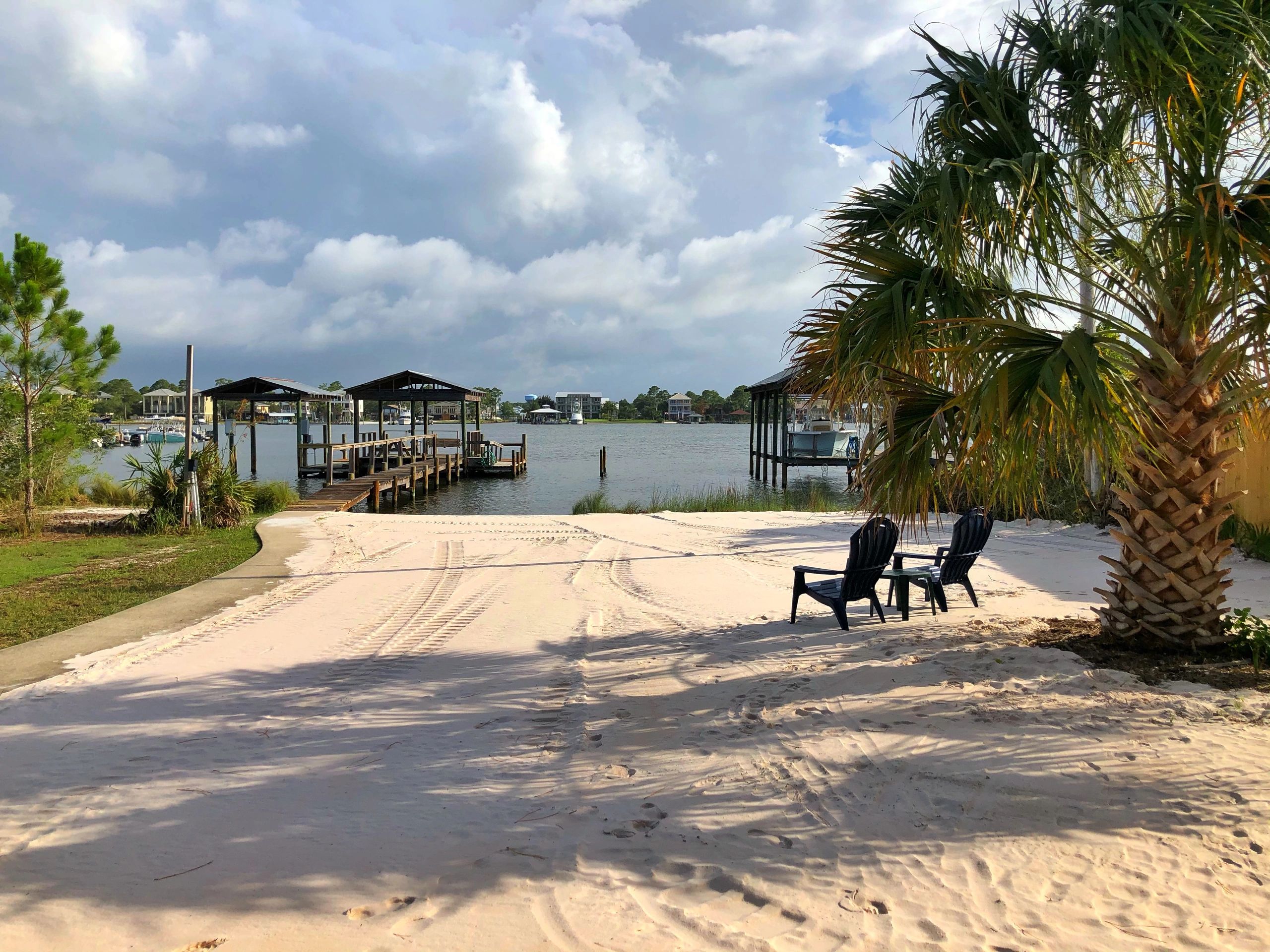 Located on Cotton Bayou in Orange Beach, Alabama, we offer a peaceful waterfront on a no-wake-zone body of water. Some of our frequent guests include dolphins, osprey and blue heron. The pier has room for three boats to be docked, with a boat launch at the head of the bayou and a marina right next door for loading up on fuel and bait. Just a few minutes by boat from Perdido Pass at Alabama Point, you can be out in the Gulf in no time to enjoy some of the best fishing around. There are also plenty of restaurants that can be reached by water, or you can just pull your boat up to Robinson Island in the Pass to enjoy hanging out with plenty of other beach goers and boaters.